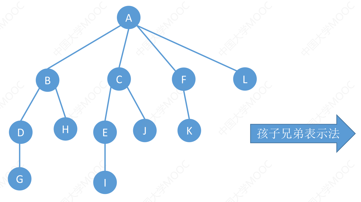 优点: 是可以方便地实现树转换为二叉树的操作, 易于查找结点的孩子等