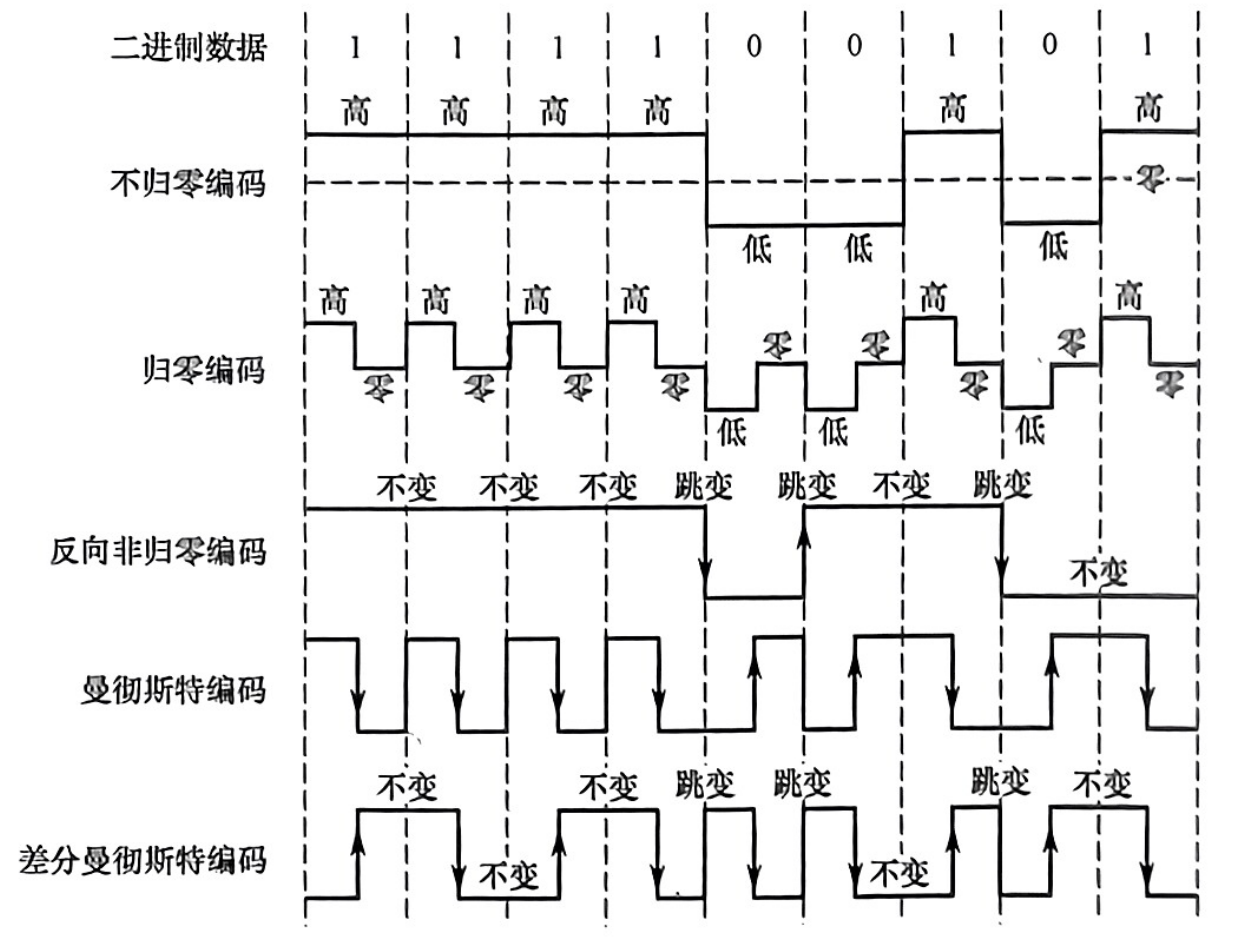 不归零编码, 归零编码, 反向非归零编码, 曼彻斯特编码, 差分曼彻斯特编码