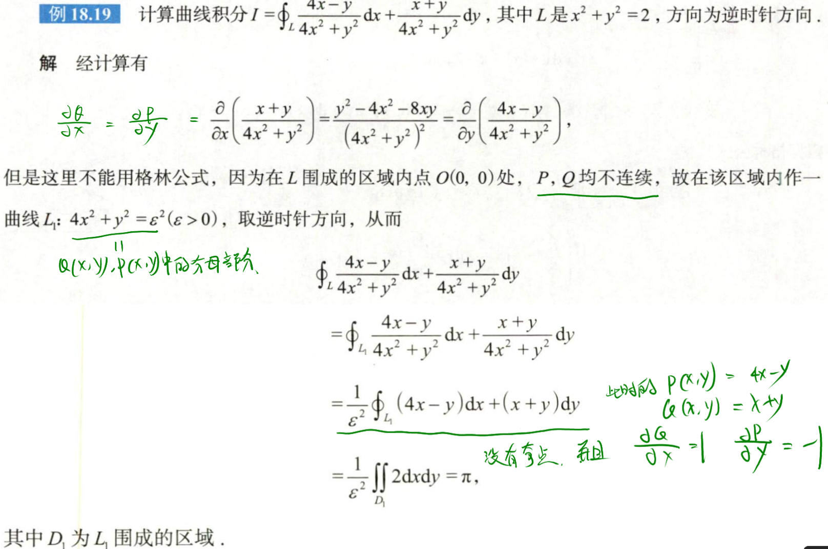 - 曲线封闭并且{没有奇点在内部} 直接使用 green 公式