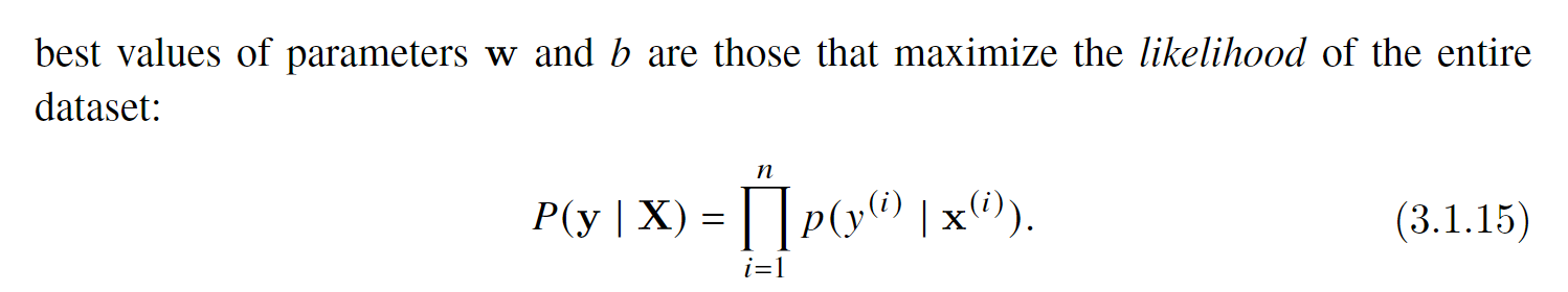 Even if we believe that the best model for predicting y given x is linear, we would not expect to find a real-world dataset of n examples where y(i) exactly equals w>x(i) + b for all 1 ≤ i ≤ n. For example, whatever instruments we use to observe the features X and labels y, there might be a small amount of measurement error. Thus, even when we are confident that the underlying relationship is linear, we will incorporate a noise term to account for such errors.