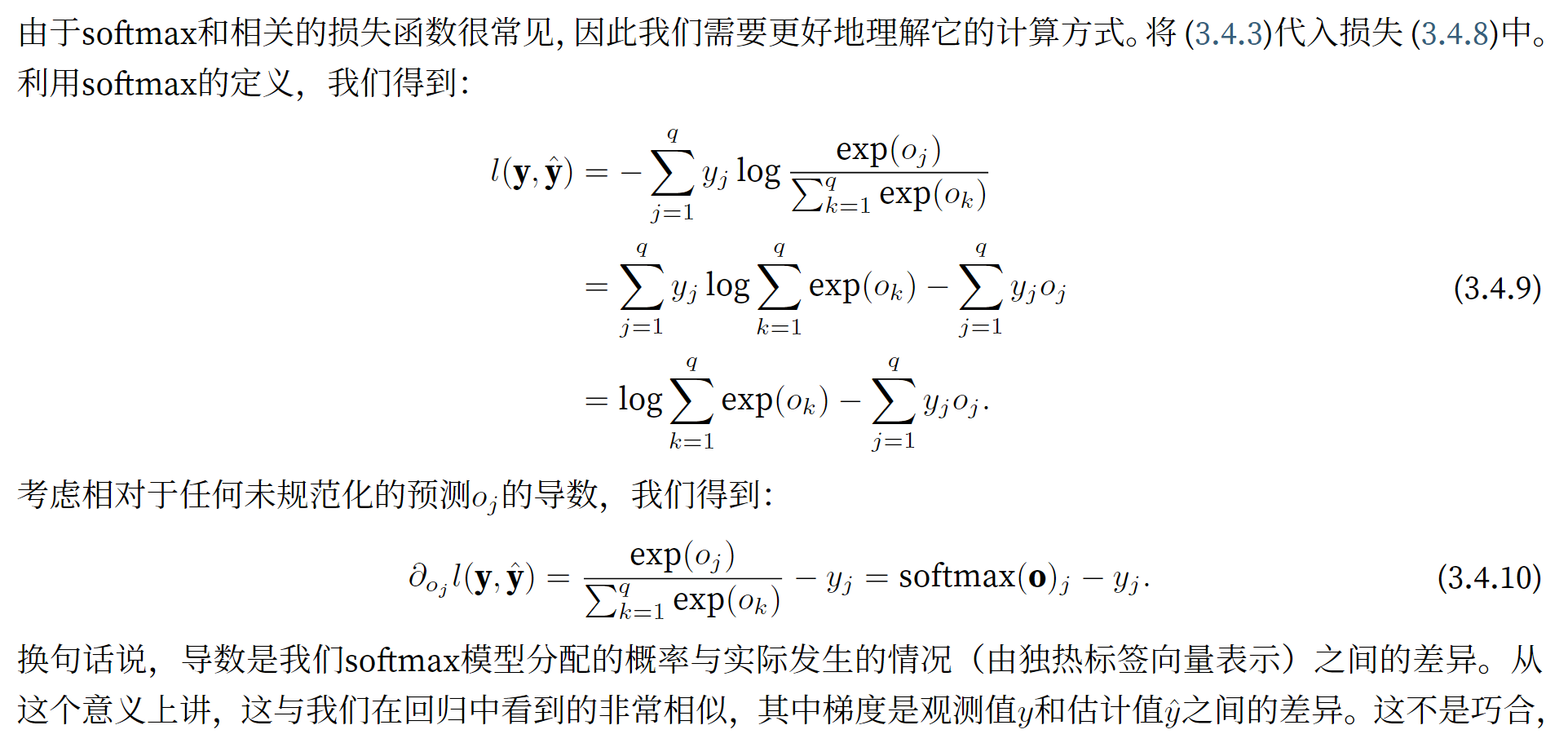 由于y是一个 长度为q的独热编码向量,所以除了一个项以外的所有项j 都消失了。