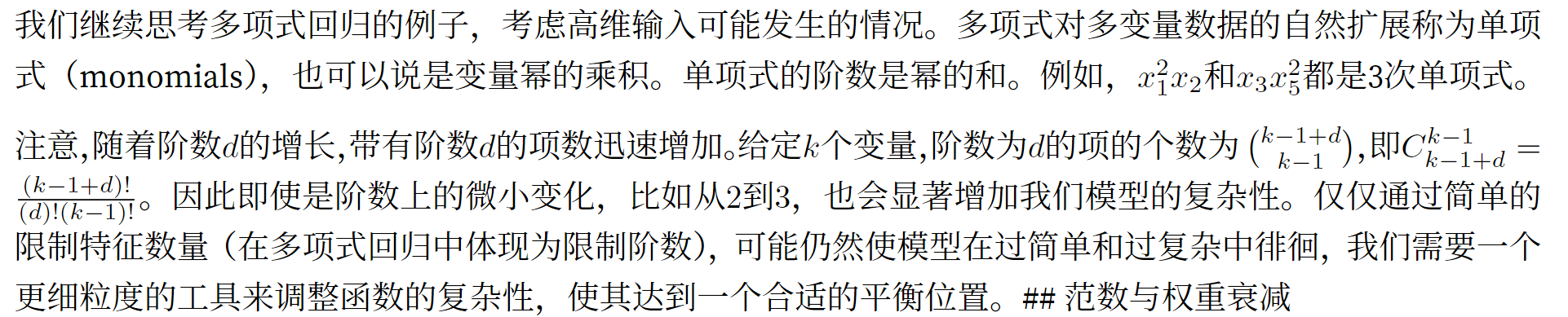 当我们有简单的模型和大量的数据时,我们期望泛化误差与训练误差相近。当我们有更复杂的模型和更少的 样本时,我们预计训练误差会下降,但泛化误差会增大。